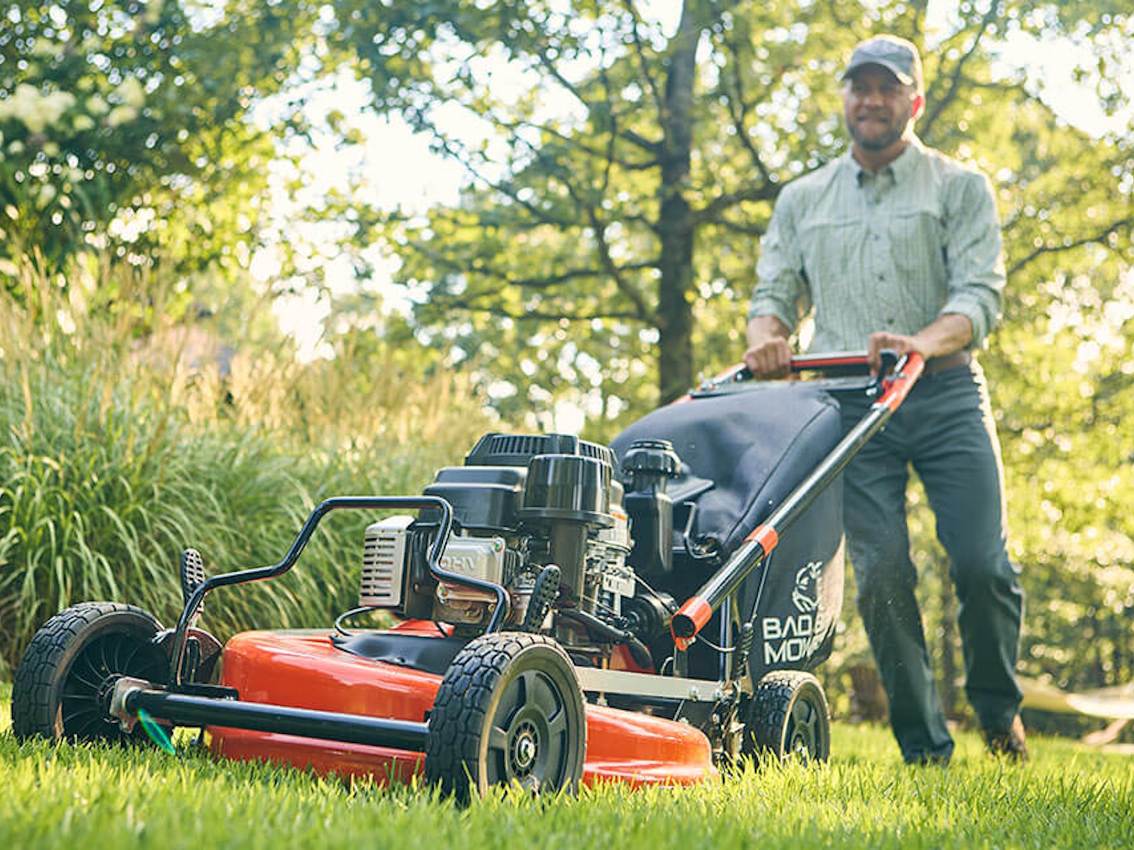 Now with the Bad Boy Push Mower, you can mow smarter, not harder. Fire up the commercial-quality engine. Our self-propelled drive system, with its high and low gear, gives you the power to mow up to 5 miles per hour. This heavy-duty system really pulls its weight around, which means you can mow more and push less. Our handles are adjustable for any size operator and the self-propel engage bar is ergonomically positioned for easy operation. Even the bags are easy to remove and empty, saving you time. Want a perfect cut? It's time to push like a pro with Bad Boy.